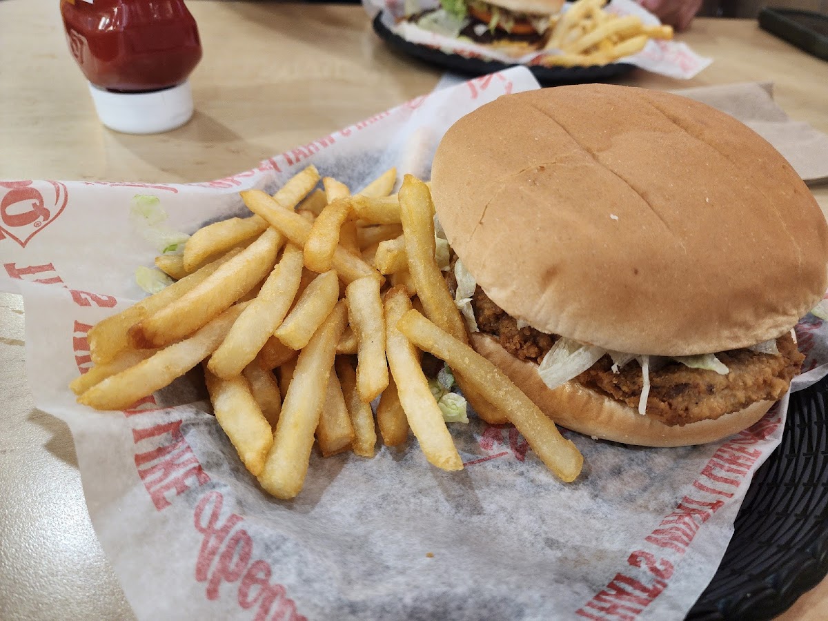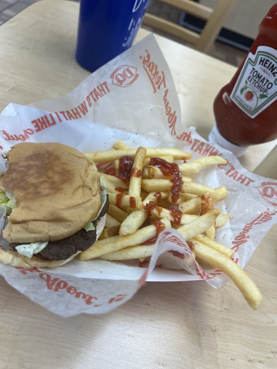 The hunger buster with pepper jack add mayo and chili cheese fries!!! Great service, and a decent atmosphere! The food took a little bit to make, but they looked a little short staffed so no biggie. I always love the touch-free option on the drink kiosk. The whole experience was awesome as always, can't wait to go back and try the dessert options when it's a little warmer out lol.